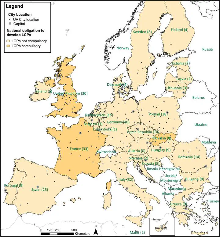 Image credit: UnsplashCities across the globe recognise their role in climate mitigation and are acting to reduce carbon emissions. Knowing whether cities set ambitious climate and energy targets is critical for determining their contribution towards the global 1.5~° C target, partly because it helps to identify areas where further action is necessary. This paper presents a comparative analysis of the mitigation targets of 327 European cities, as declared in their local climate plans. The sample encompasses over 25% of the EU population and includes cities of all sizes across all Member States, plus the UK. The study analyses whether the type of plan, city size, membership of climate networks, and its regional location are associated with different levels of mitigation ambition. Results reveal that 78% of the cities have a GHG emissions reduction target. However, with an average target of 47%, European cities are not on track to reach the Paris Agreement: they need to roughly double their ambitions and efforts. Some cities are ambitious, e.g. 25% of our sample (81) aim to reach carbon neutrality, with the earliest target date being 2020.90% of these cities are members of the Climate Alliance and 75% of the Covenant of Mayors. City size is the strongest predictor for carbon neutrality, whilst climate network(s) membership, combining adaptation and mitigation into a single strategy, and local motivation also play a role. The methods, data, results and analysis of this study can serve as a reference and baseline for tracking climate mitigation ambitions across European and global cities.