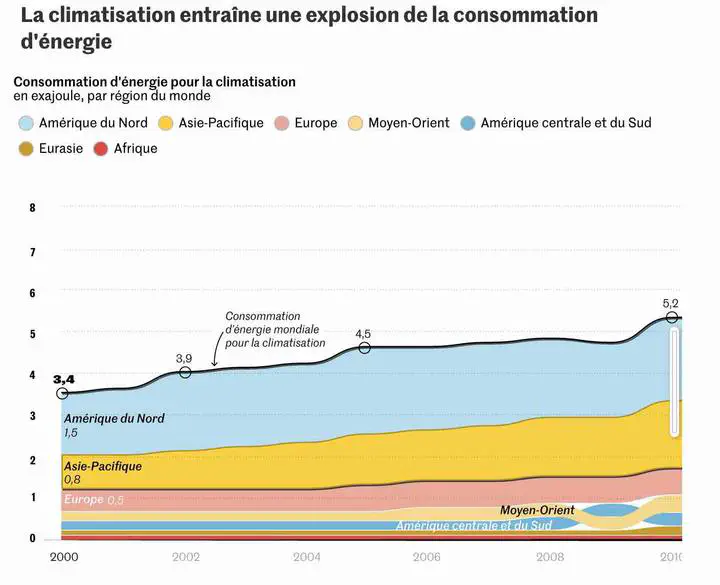 Alors que les vagues de chaleur se multiplient, l’air conditionné connaît une croissance fulgurante. S’il est indispensable pour certains publics fragiles, il accroît la demande en énergie, donc les émissions de gaz à effet de serre.